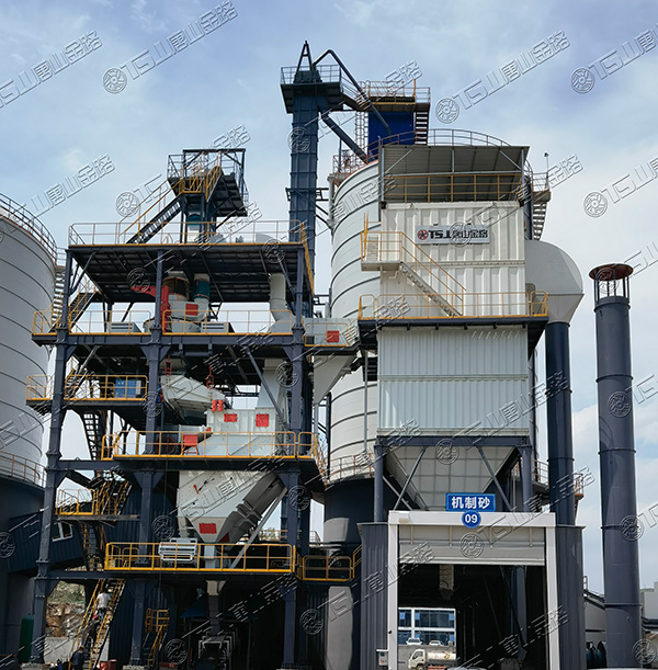 这条V9-150制砂生产线,总投料量为150吨,整条生产线设备选型为:制砂选粉一体机、空气筛、粗细粉分离机等。