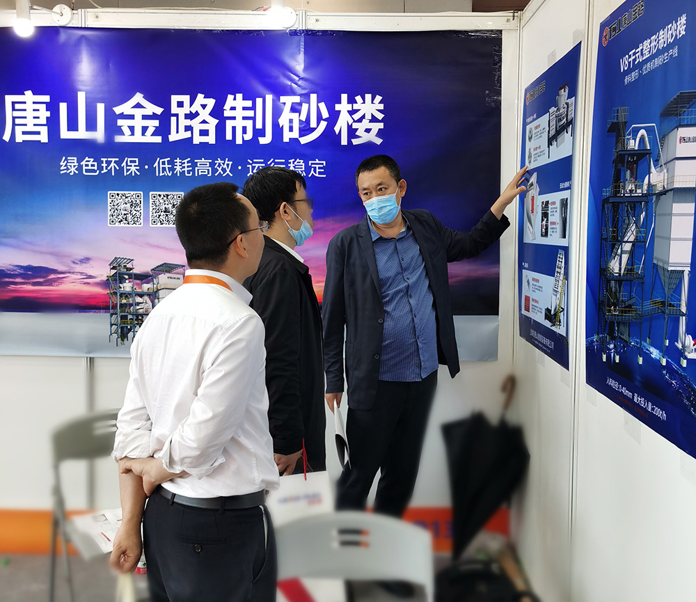 作为机制砂机械设备领域的相关企业,唐山金路以机械设备提供商的身份亮相此次展会,展出展品为V8干式整形制砂楼、V9干式制砂楼、高频筛、无动力选粉机、机制砂选粉机等。每样设备皆是唐山金路数年研究的成果,设备产出的机制砂粒形圆润、级配合理,是制砂生产企业的理想产品。