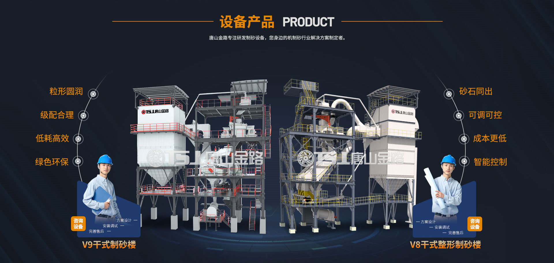 唐山金路作为一家集研发、生产、销售、服务于一体的制砂机械设备企业,一直致力于环保型破碎制砂设备的研发与生产,现建有年产100万吨的机制砂生产实践基地。公司自主研发的V8干式整形制砂楼、V9干式制砂楼,具有绿色环保、能耗低产量高、智能控制等特点,产出的机制砂级配合理、粒形圆润,是制砂生产企业的理想产品。